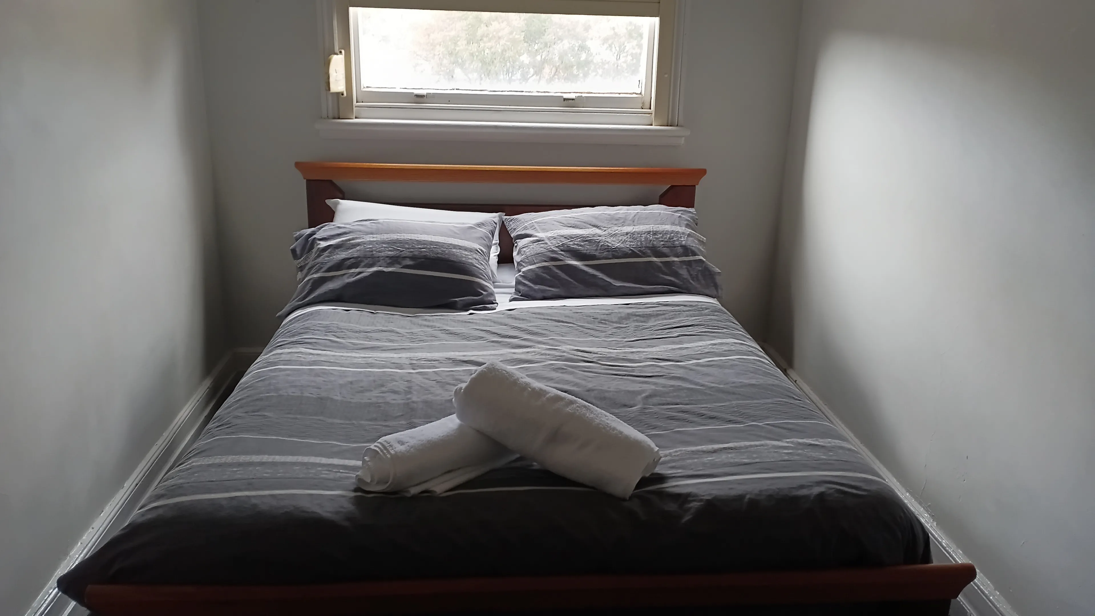 Doulbe room with Double bed, sleeps one person or a couple. Room consists of wardrobe, bedside table, double bed, fan, heater and noise proof shutters.