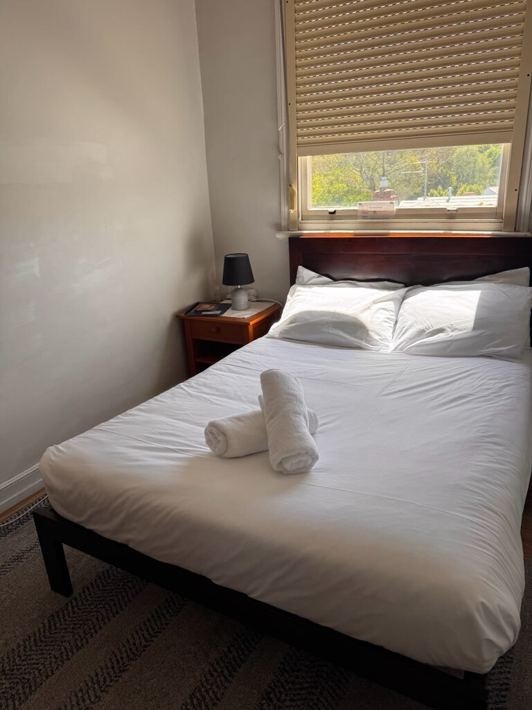 Double bed with wardrobe, heating & fan.